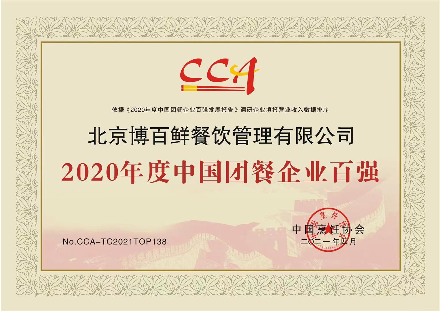 2020年中烹协团餐百强企业