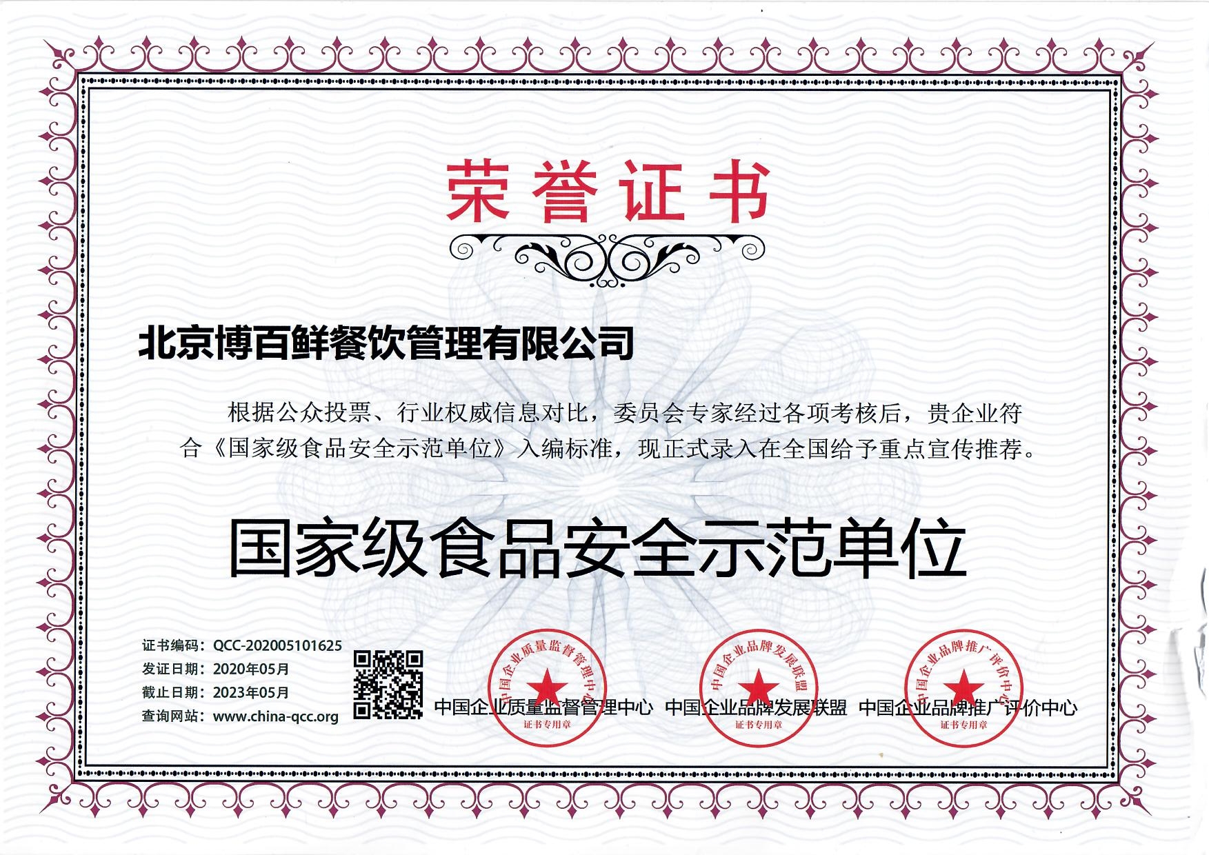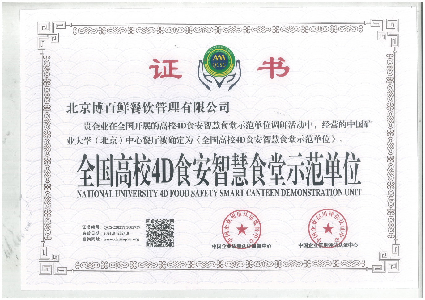 食品安全管理体系认证证书