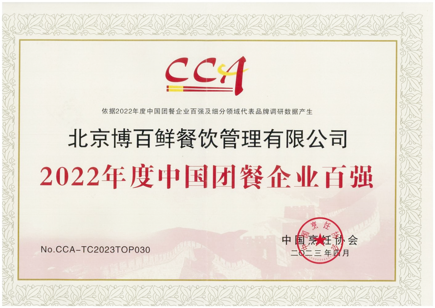 2022年中烹协团餐百强企业