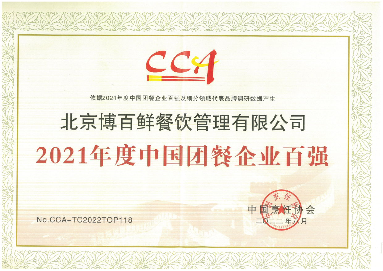 2021年中烹协团餐百强企业